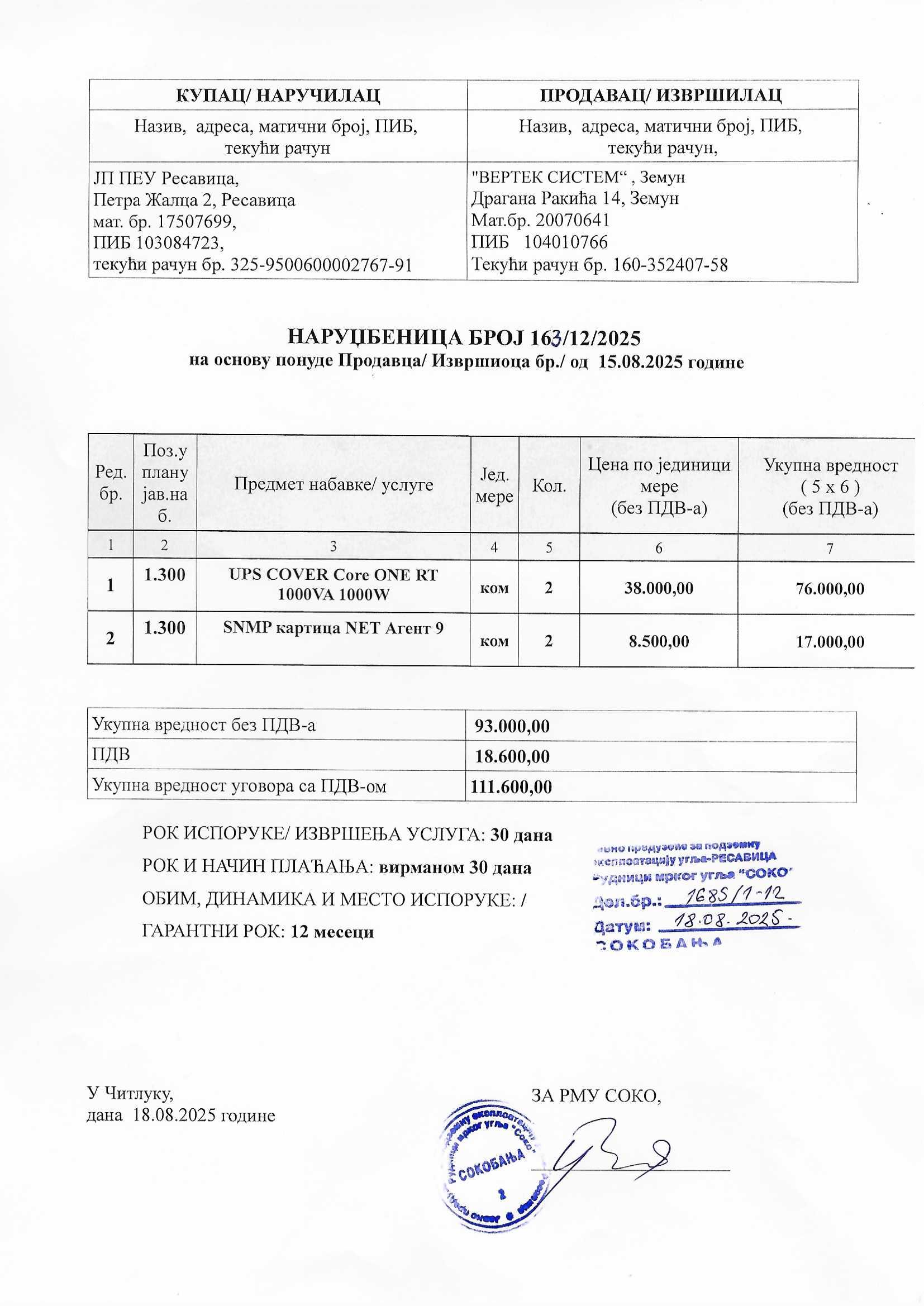 Nabavka UPS Cover Core IK sa LAN karticom - RMU "Soko"