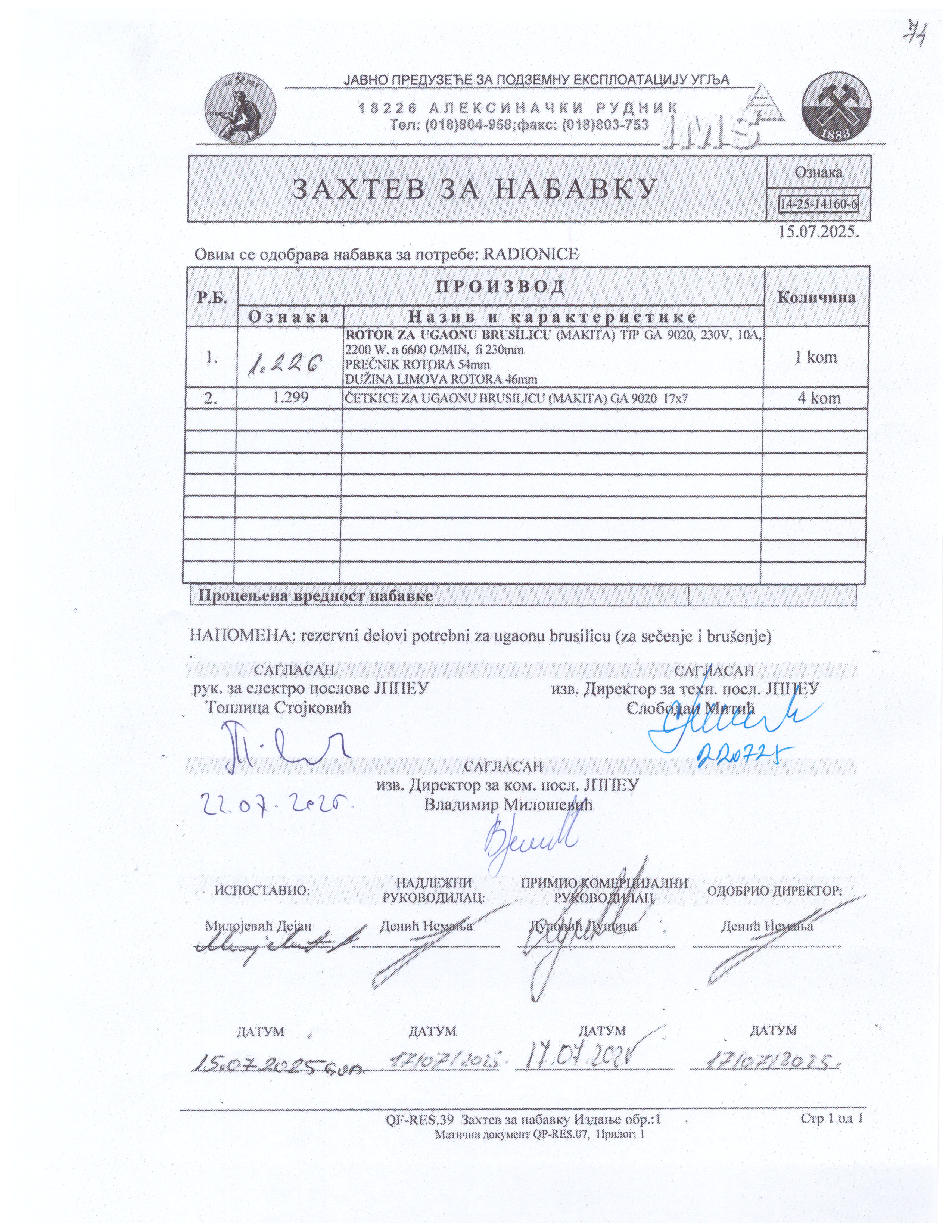 Rezervni delovi za ugaonu brusilicu - ponovljeno - RGP "Aleksinac"