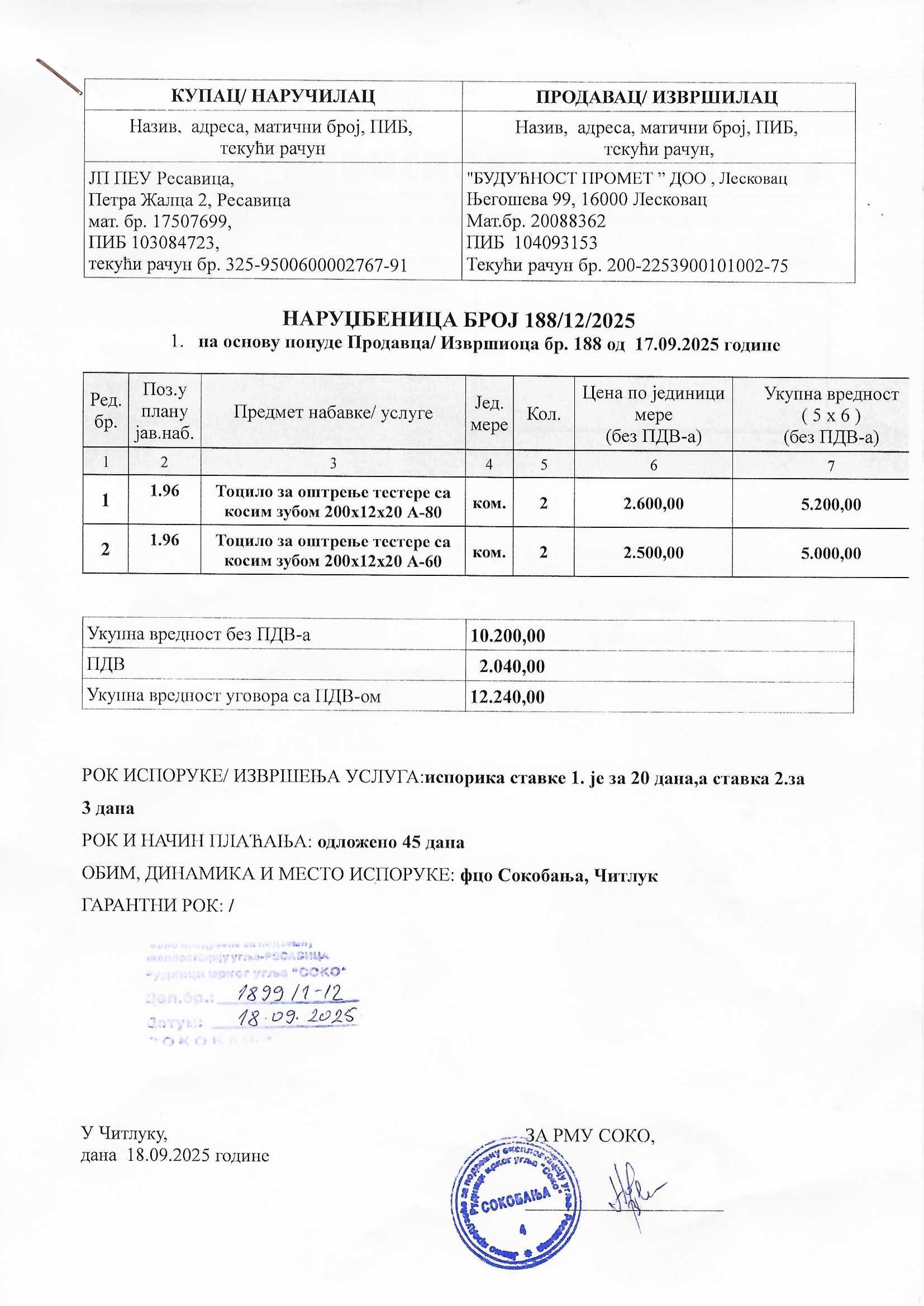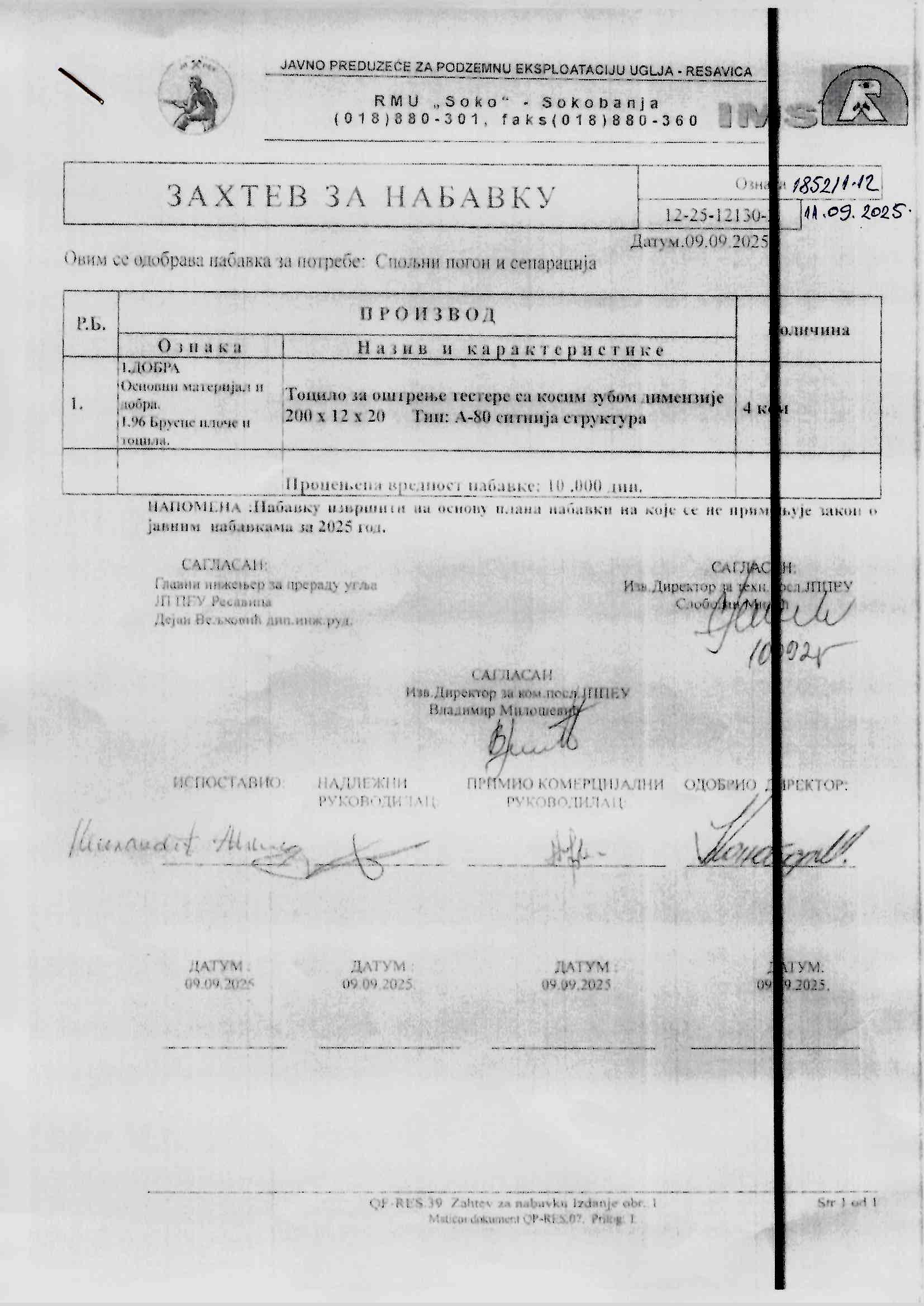 Nabavka tocila za ostrenje testere sa kosim zubom (nabavka do 10.000,00 din) - RMU "Soko"
