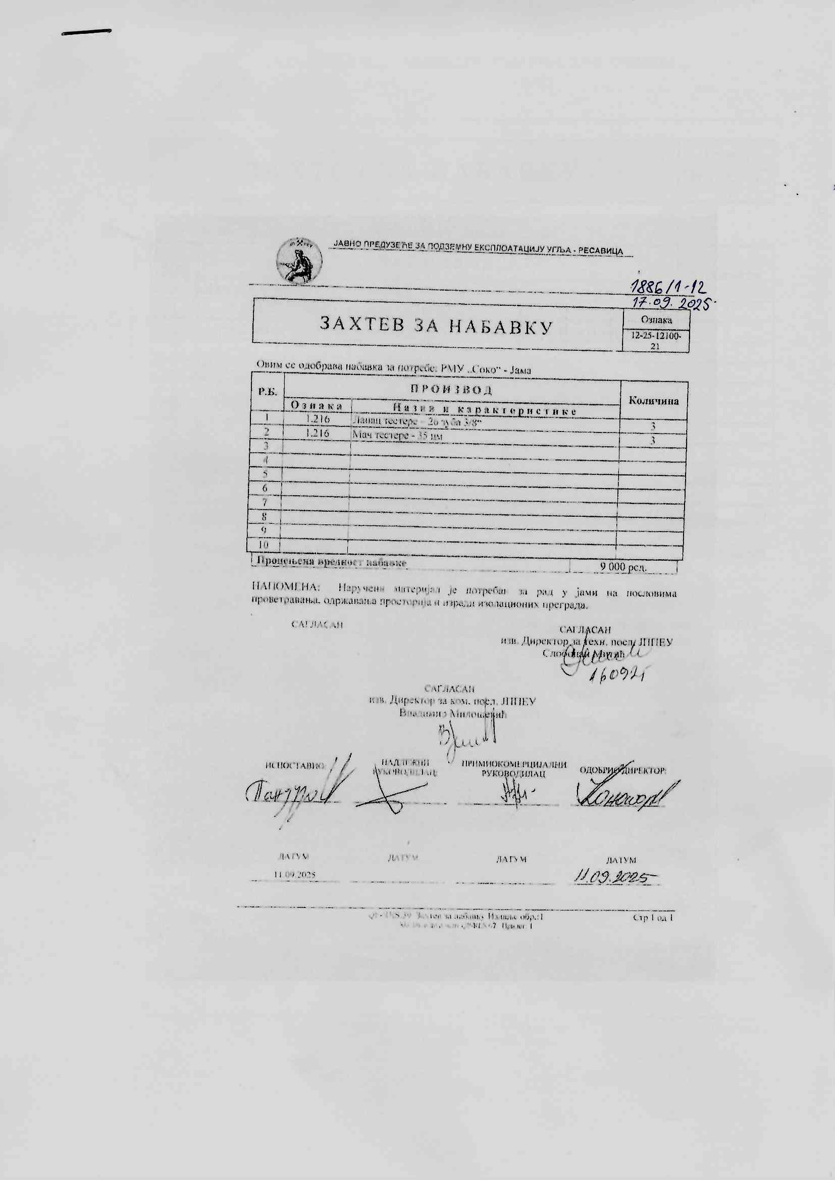 Nabavka lanaca i mača za testeru - RMU "Soko"