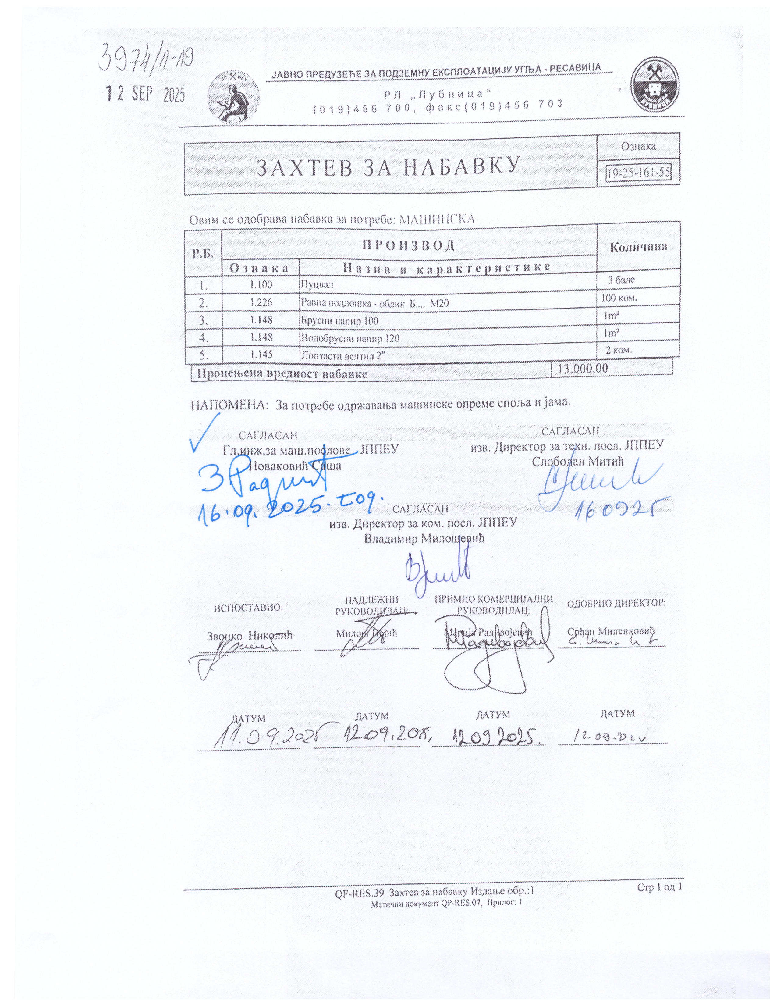 Pucval..........3 bale Ravna podloška - oblik B M20..........100 kom Brusni papir 100..........1 m2 Vodobrusni papir 120..........1 m2 Loptasti ventil 2"..........2 kom