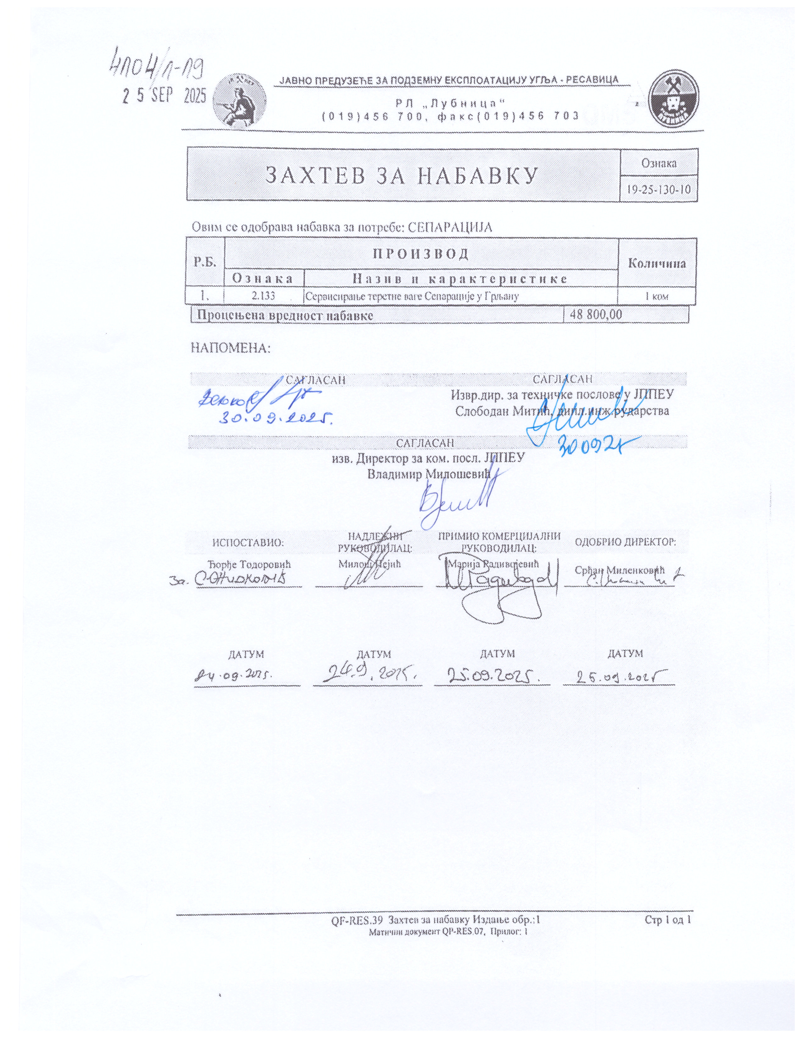 Поправка и сервисирање механичке друмске ваге од 60 т са путним трошковима..........1 ком Плоча сабирне кутије за претвараче..........1 ком