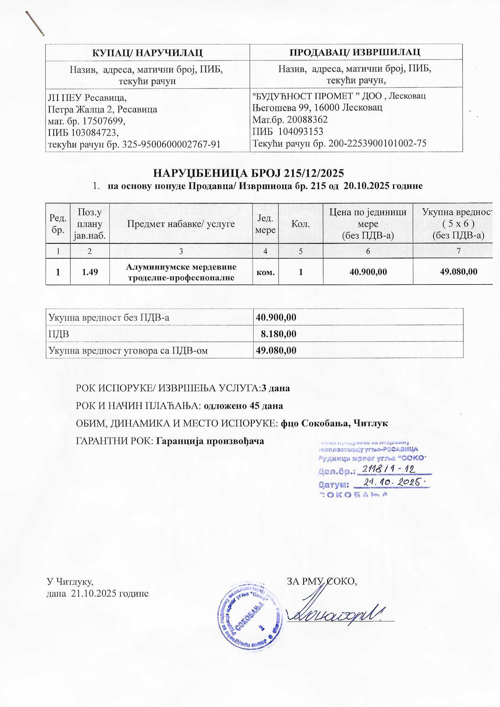 Nabavka aluminijumskih merdevina - RMU "Soko"