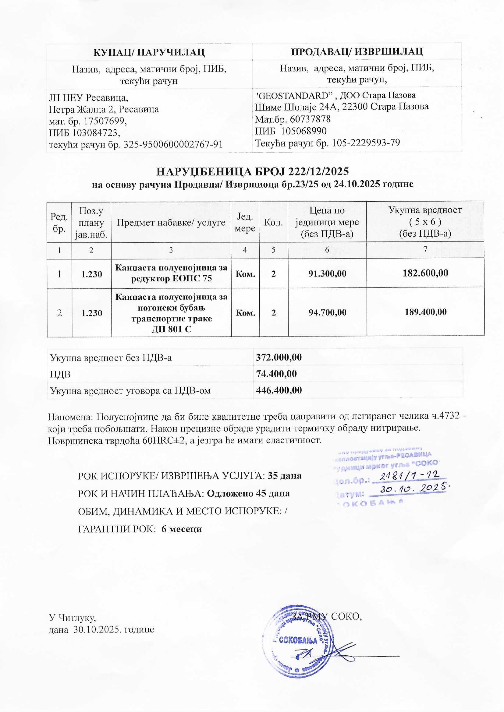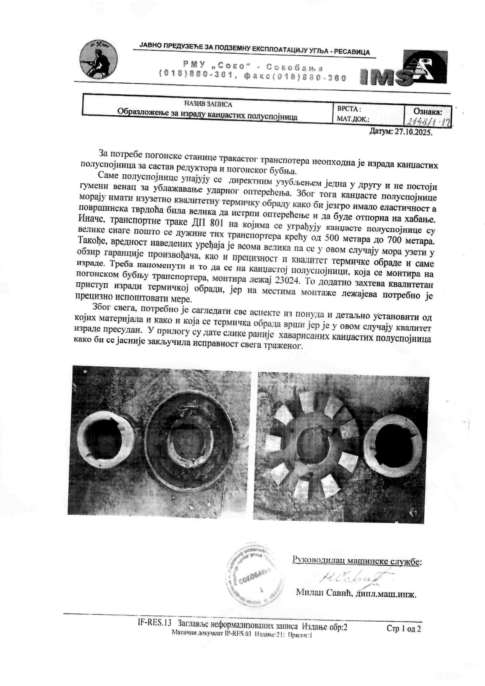 Nabavka kandzastih poluspojnica - RMU "Soko"