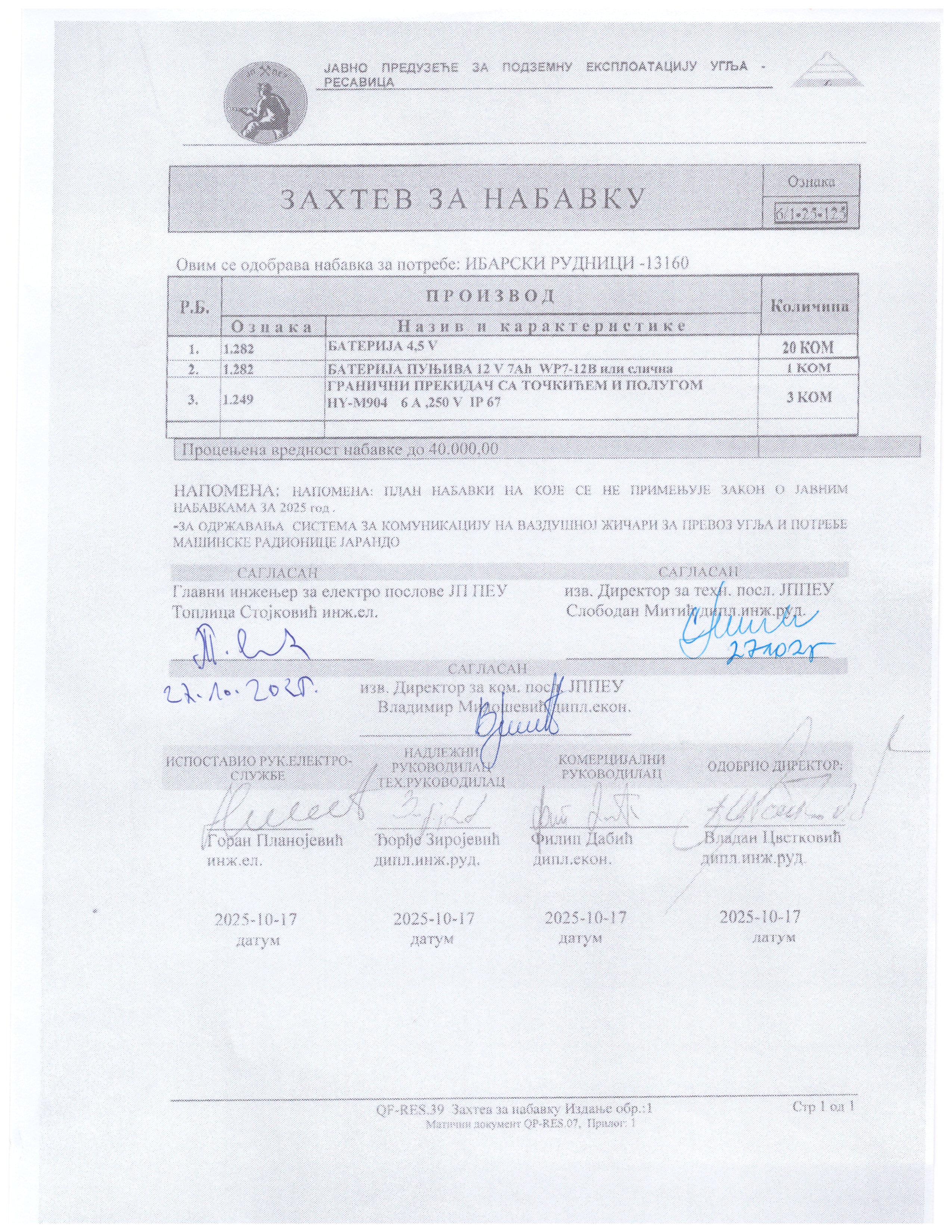 Батерија 4,5 V Батерија пуњива 12 V 7Ah WP7-12B Или слична Гранични прекидач Са точкићем и полугом HY-M904 6A, 250 V IP 67