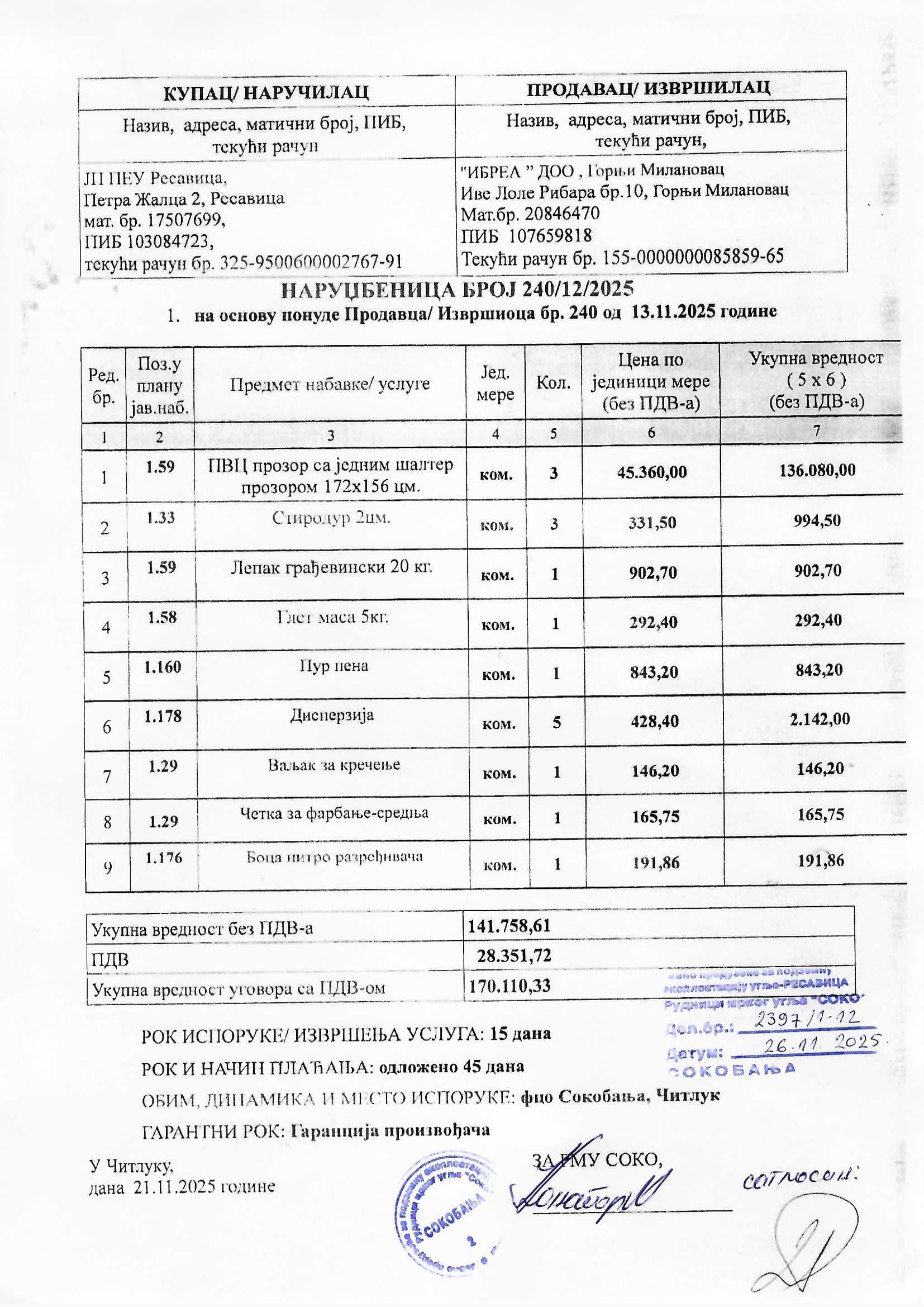 Nabavka repromaterijala za sredjivanje portirnice - RMU "Soko"