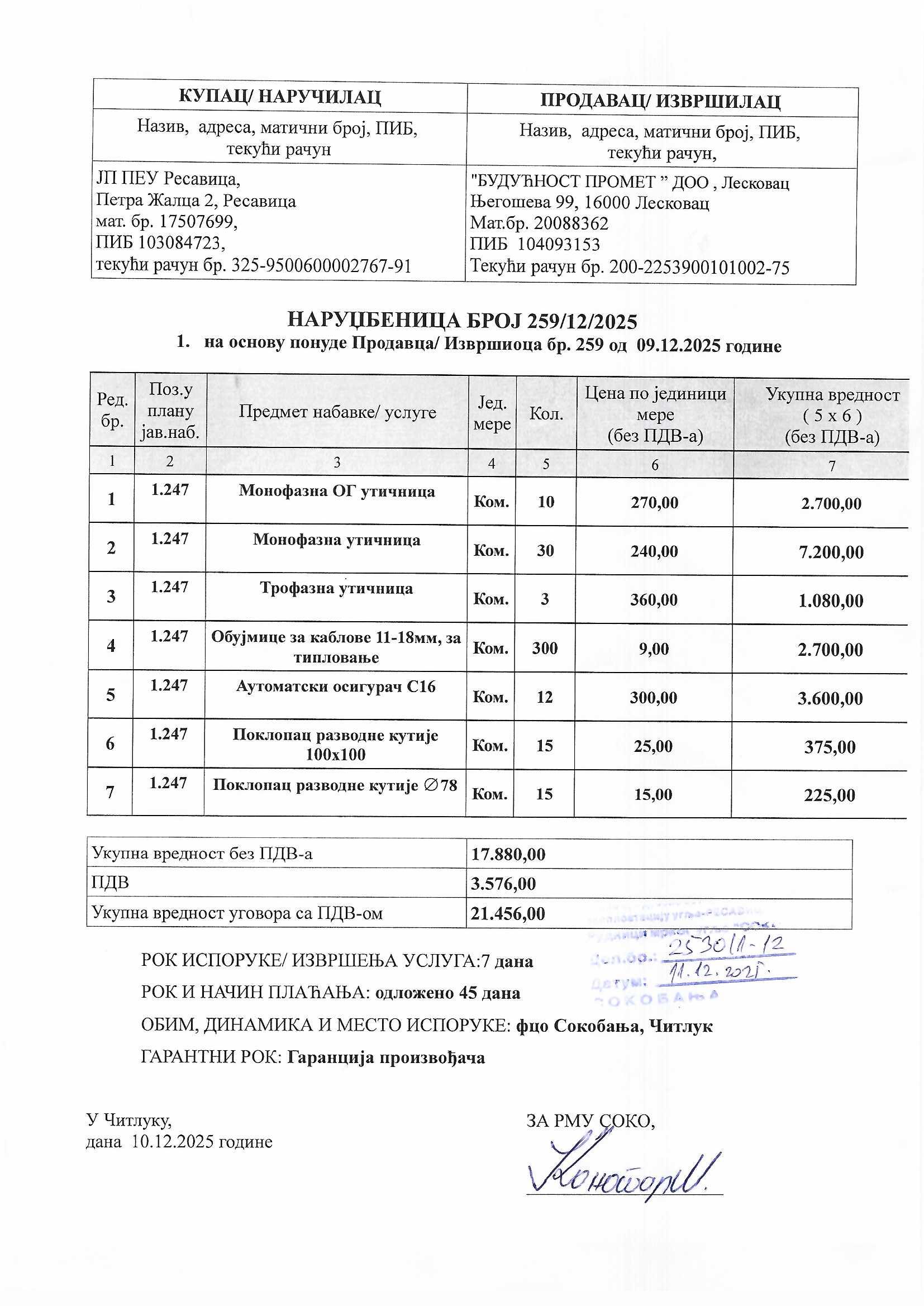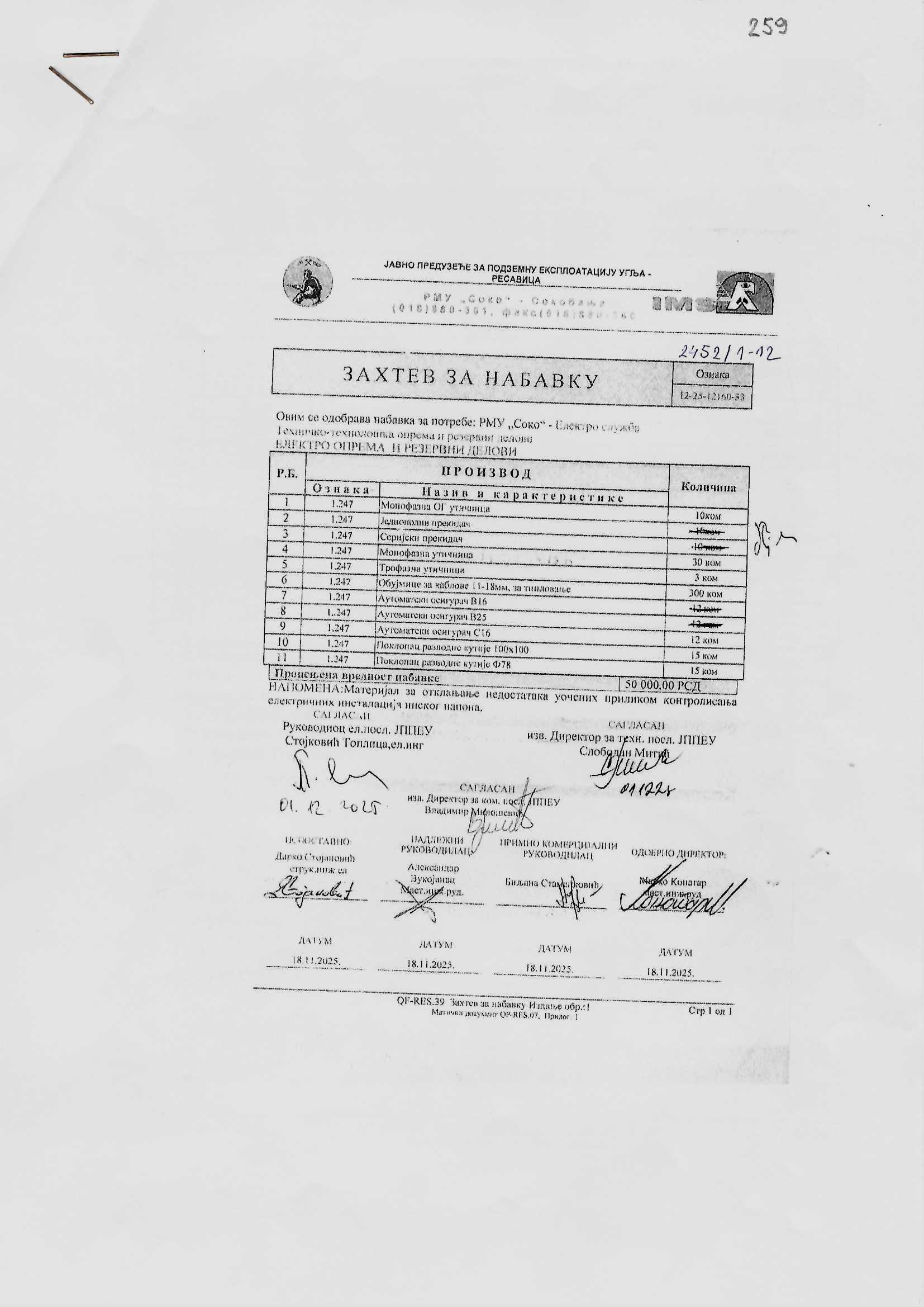 Nabavka repromaterijala - Elektro sluzba - RMU "Soko"