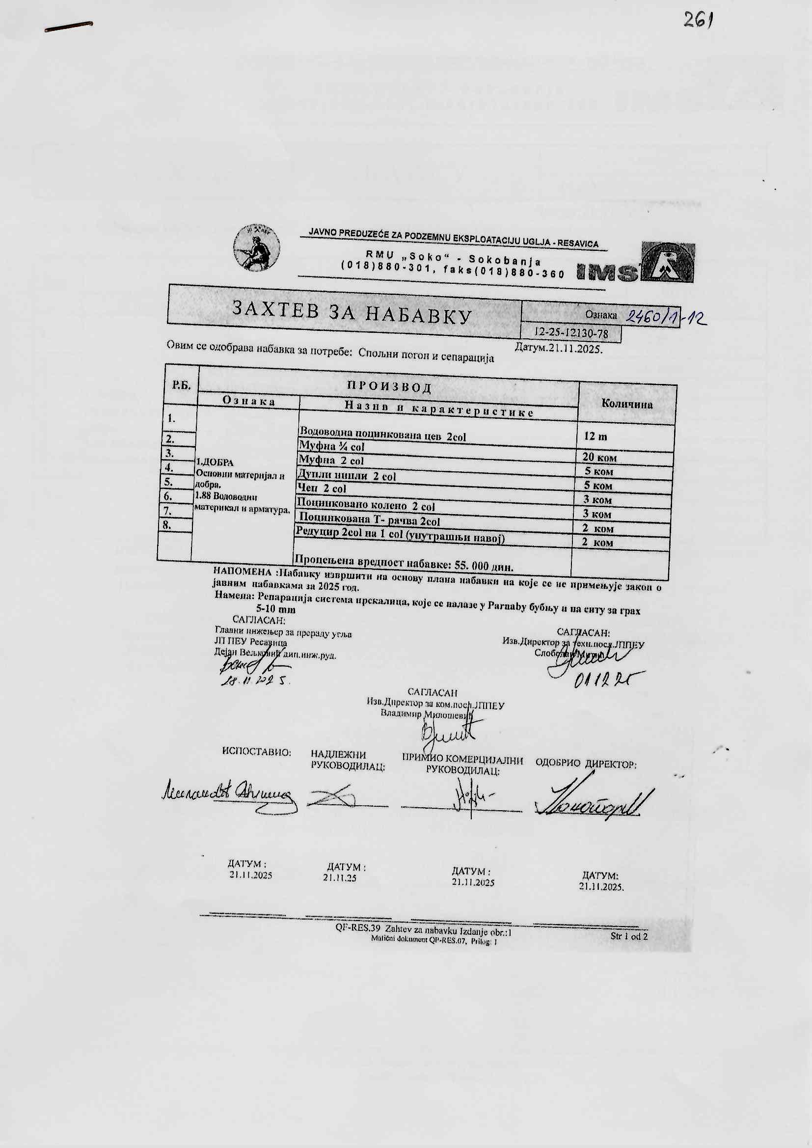 Zahtev za nabavku 261