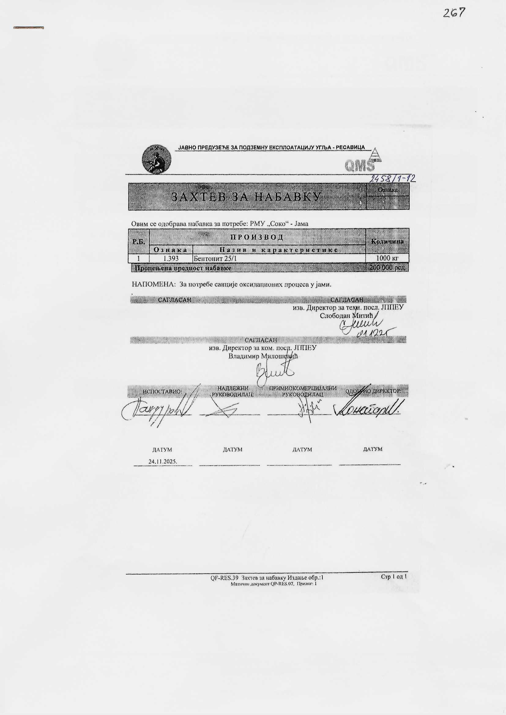 Zahtev za nabavku 267
