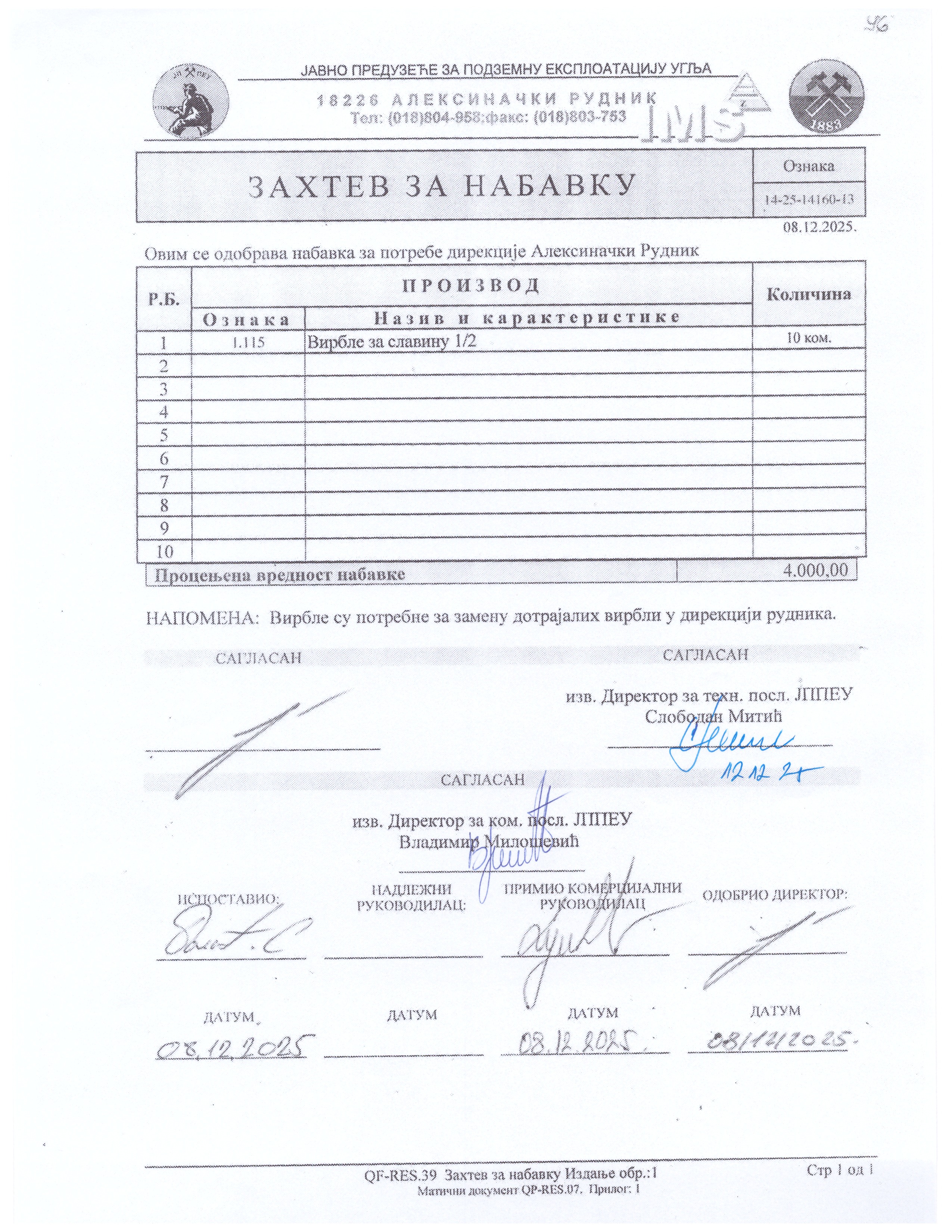 Zahtev za nabavku