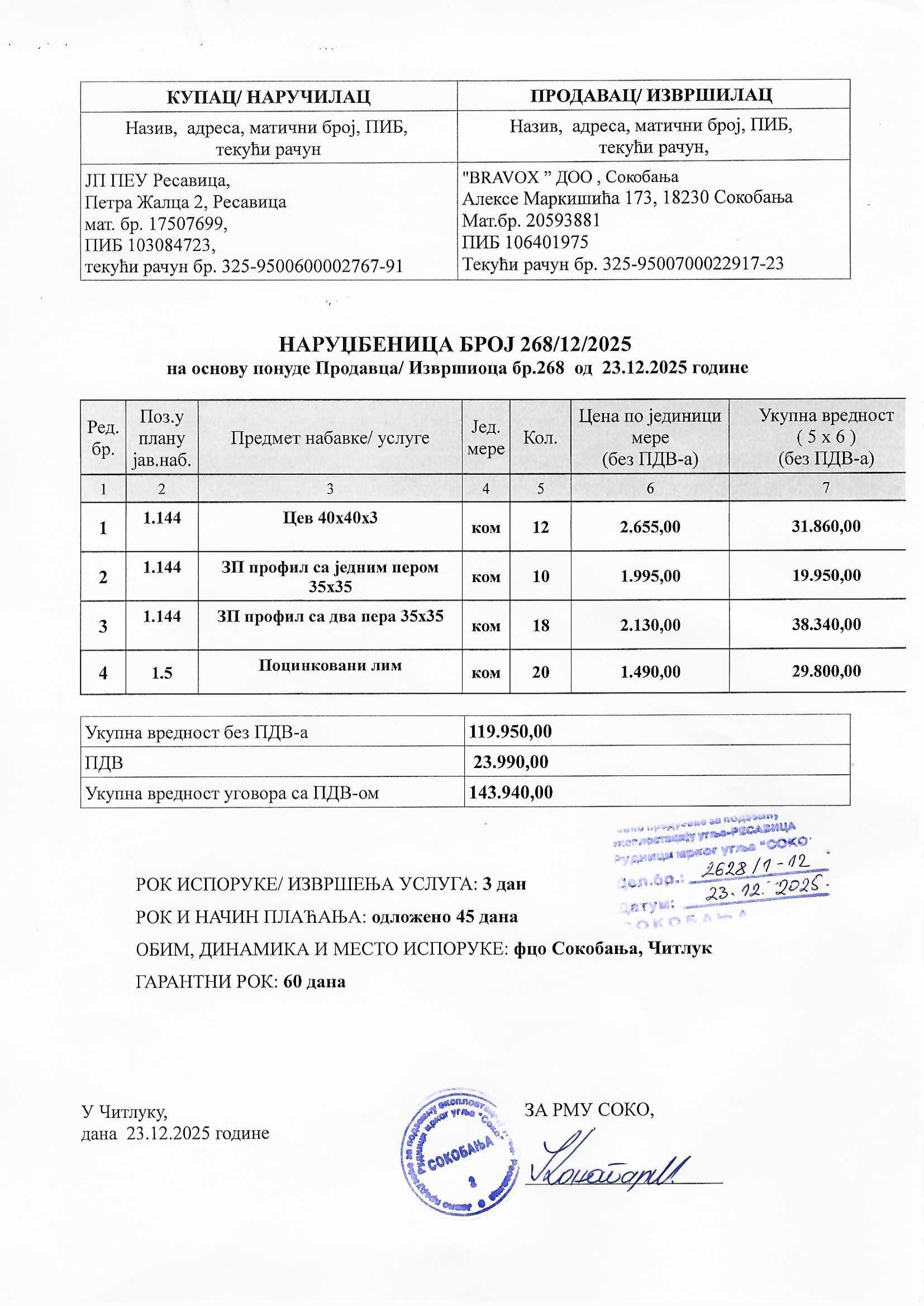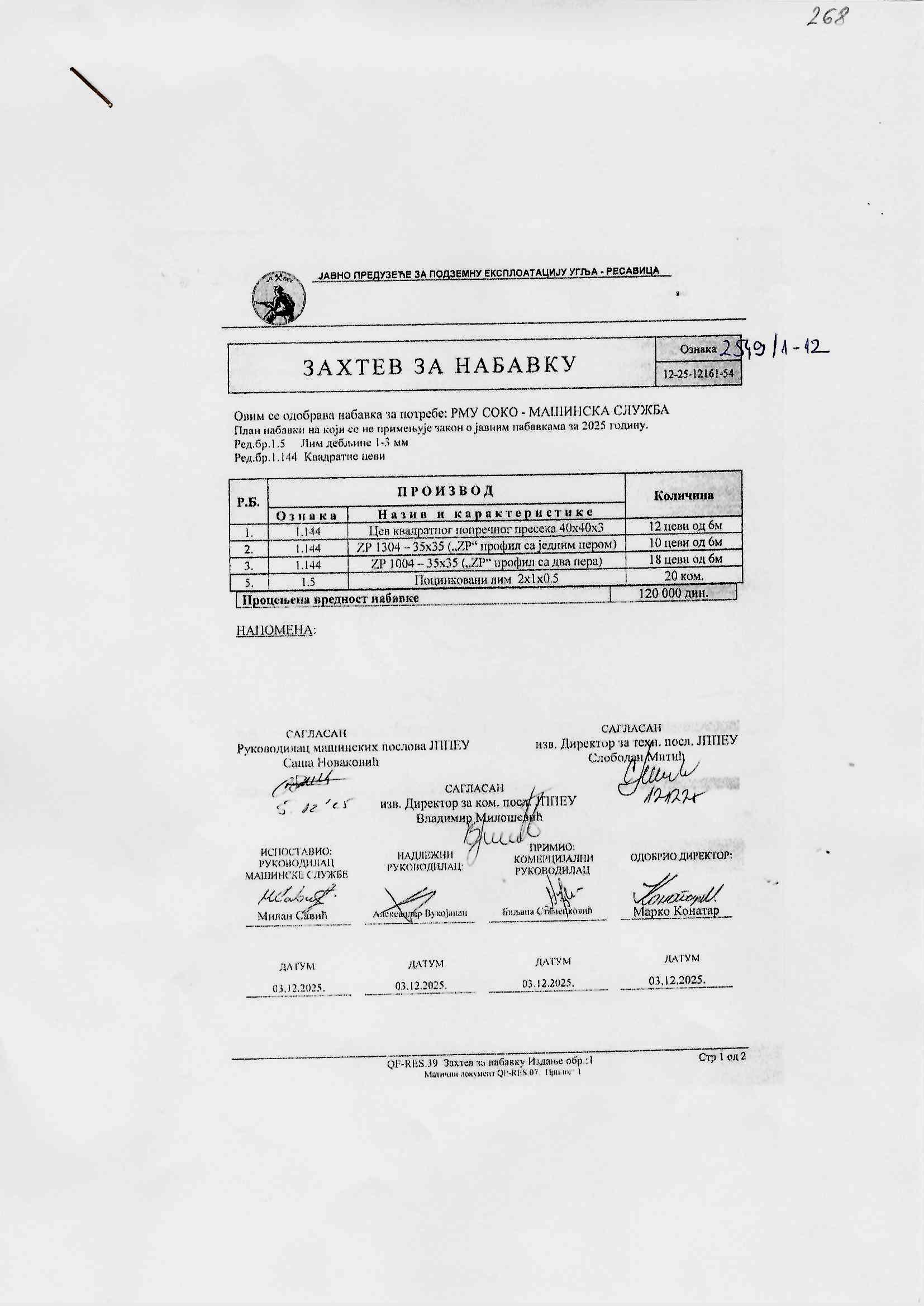 Zapisnik o otvaranju ponuda i izvestaj 268