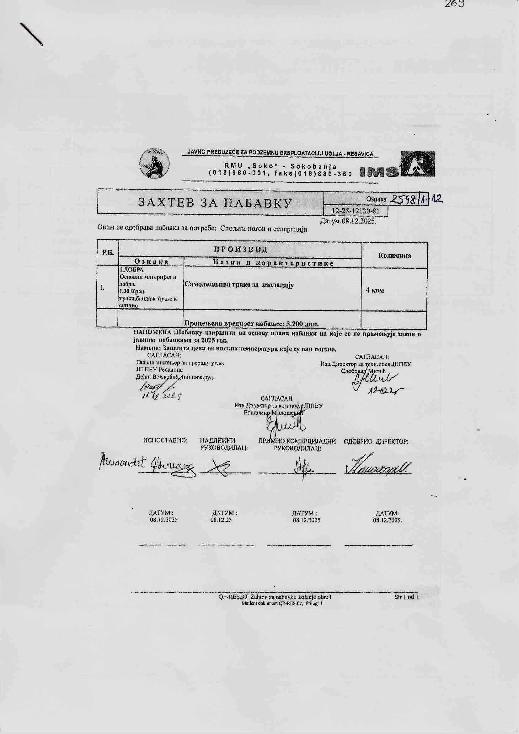 Nabavka samolepljive trake za izolaciju (nabavka do 10.000,00 din.) - RMU "Soko"