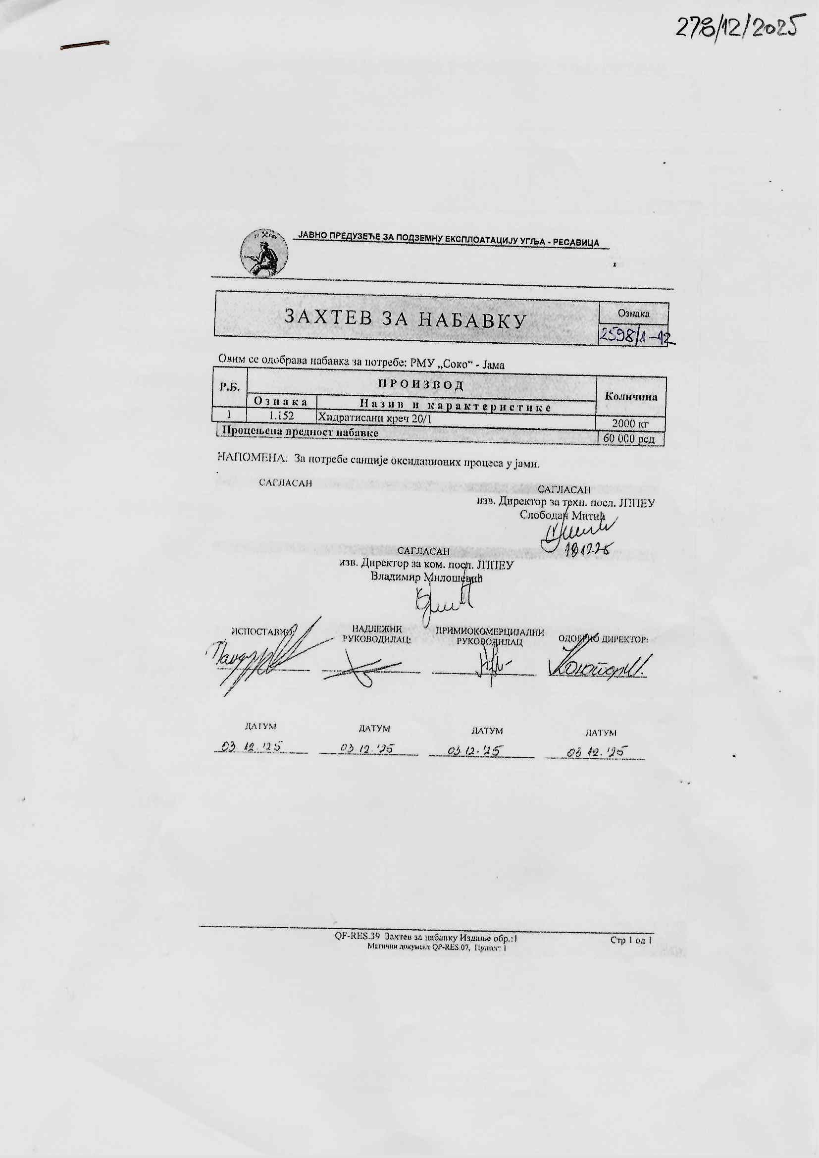 Zahtev za nabavku 278