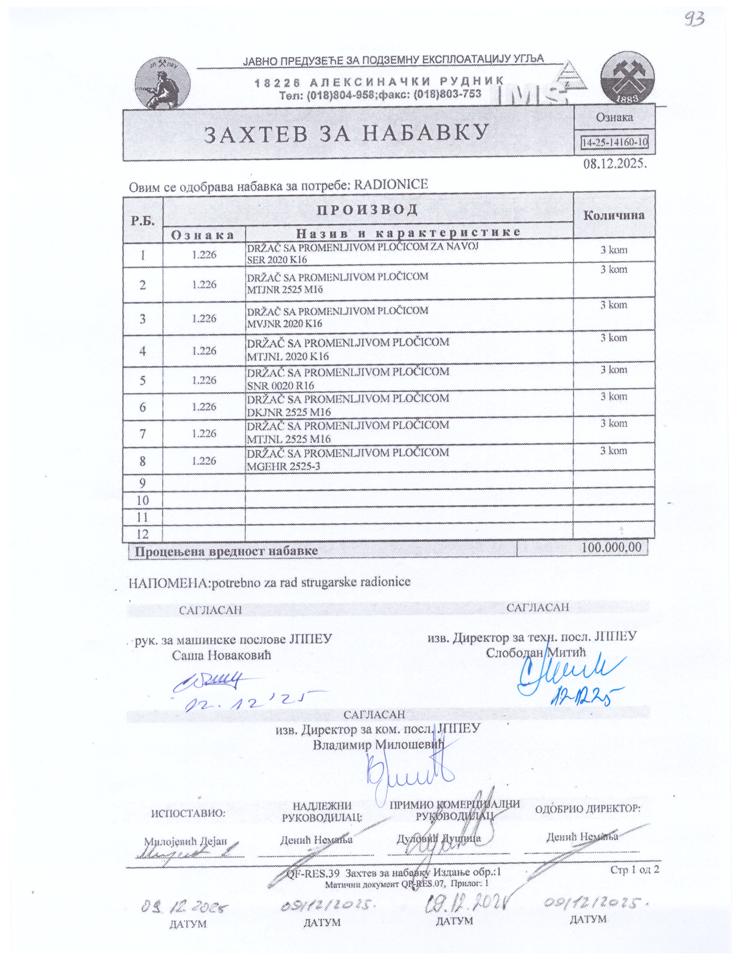 Držači sa promenljivom pločicom za strugarsku radionicu po zahtevu za nabavku - ponovljeno