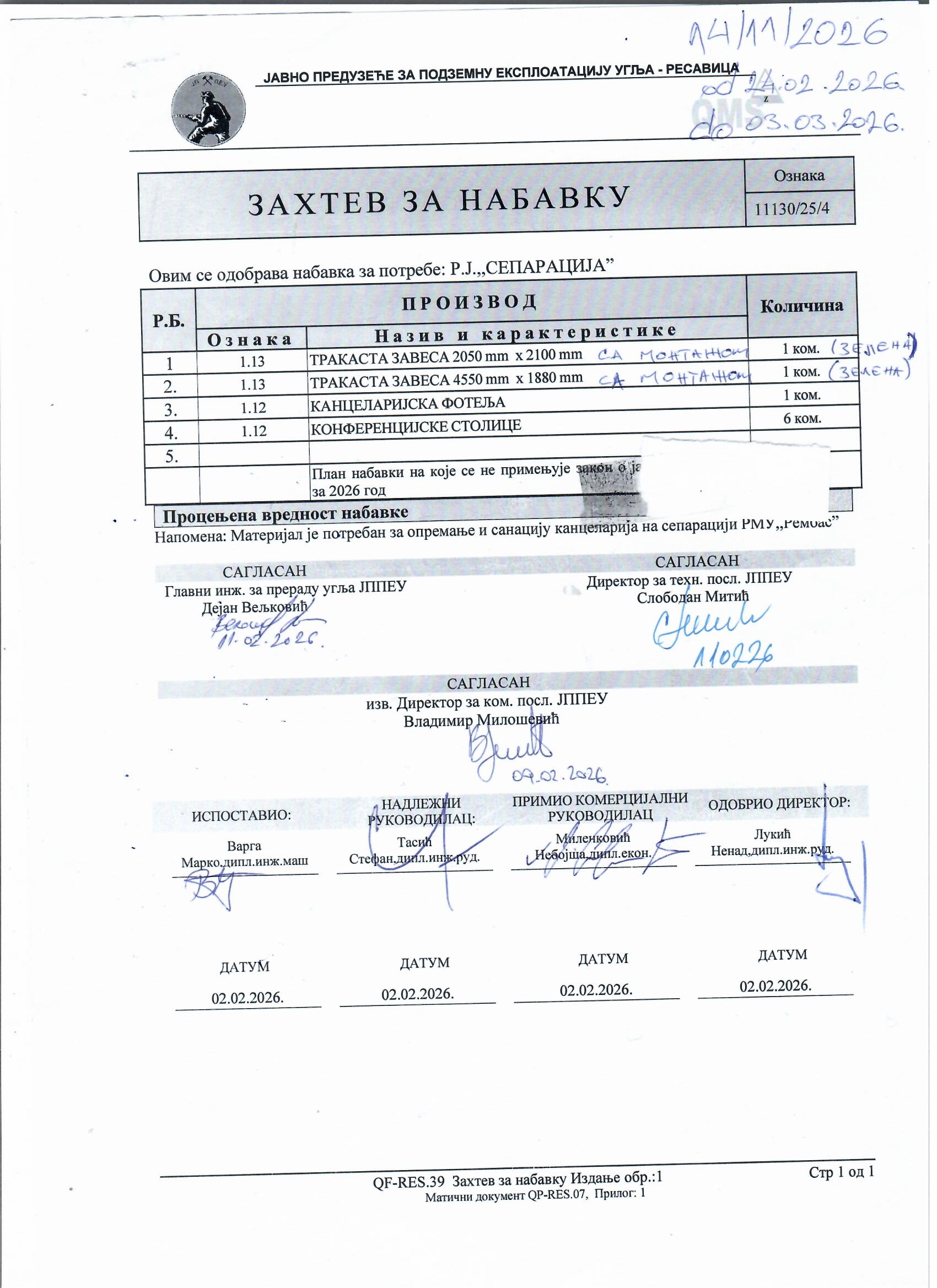zahtev za nabavku