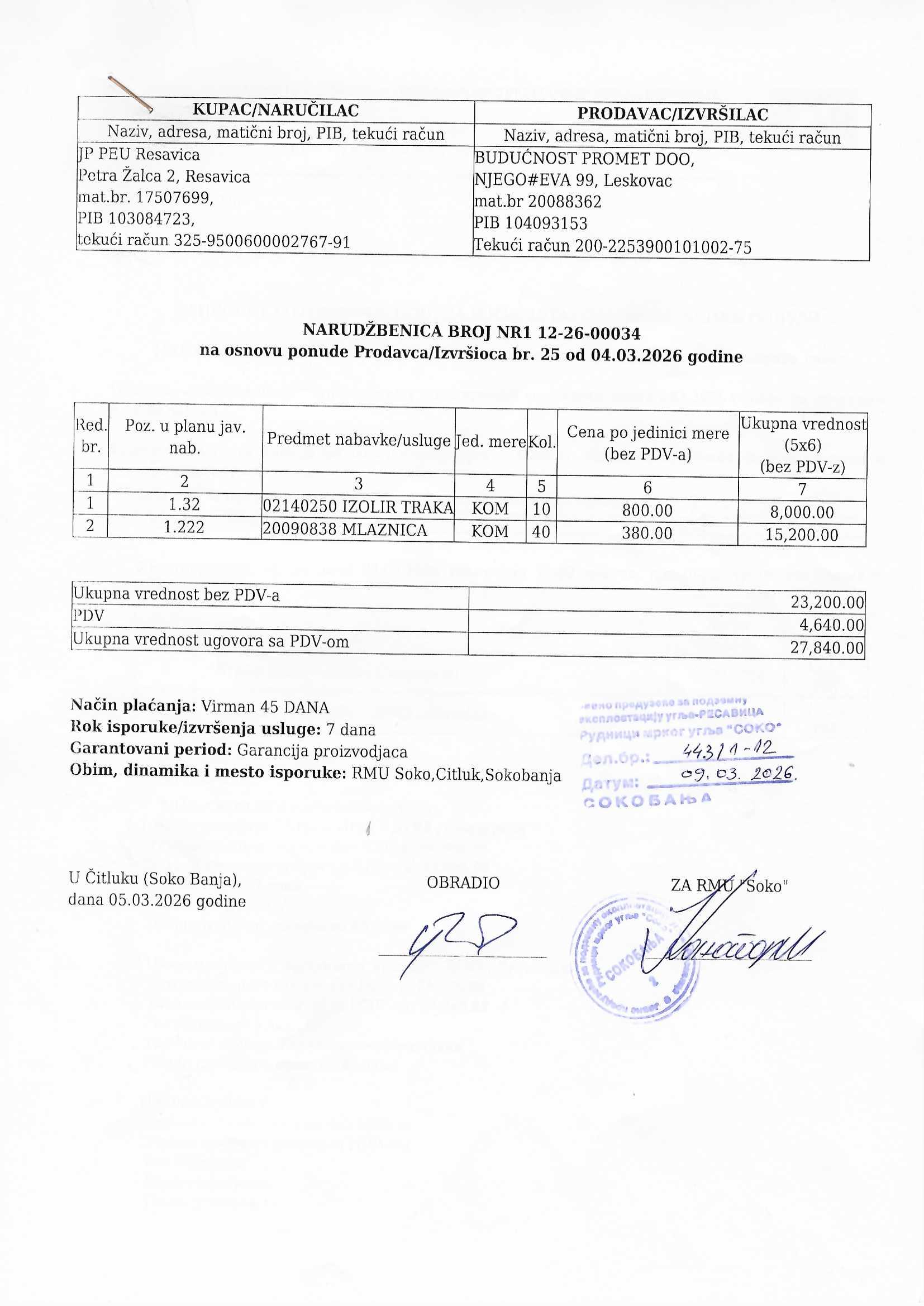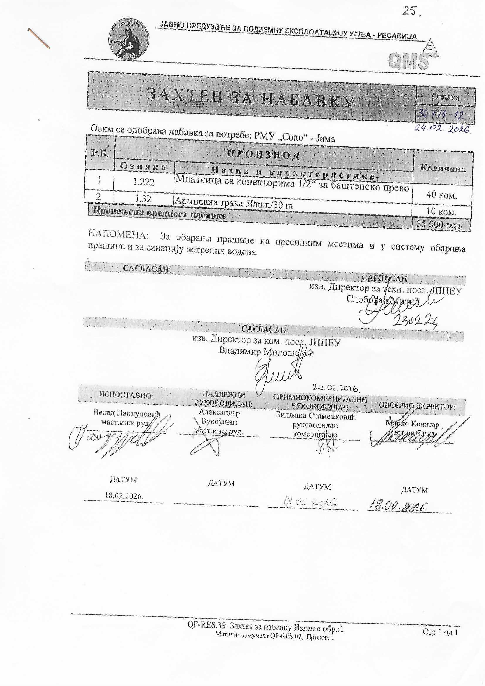 Nabavka mlaznica sa konektorima i armirane trake - RMU "Soko"