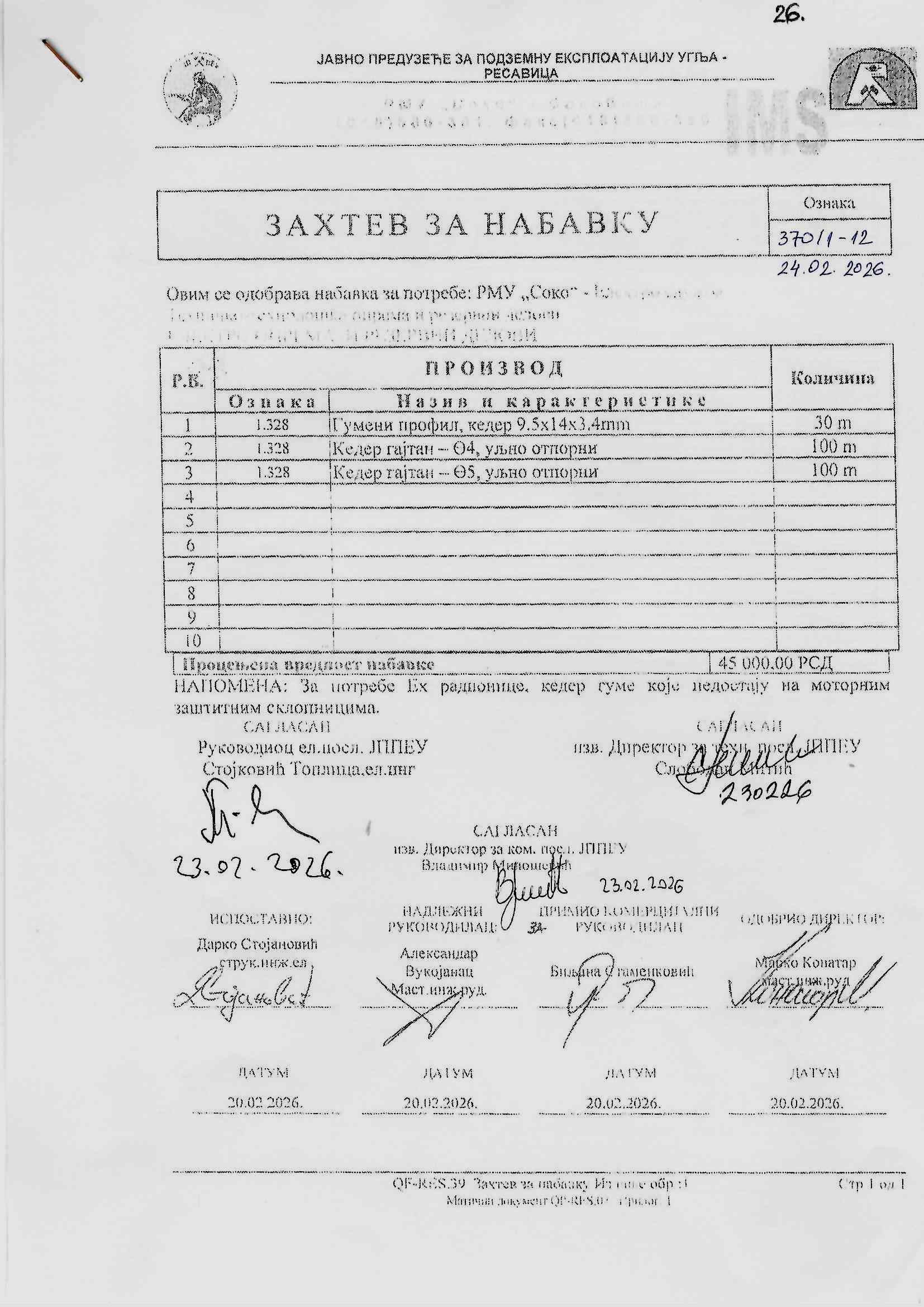 Zahtev za nabavku 26